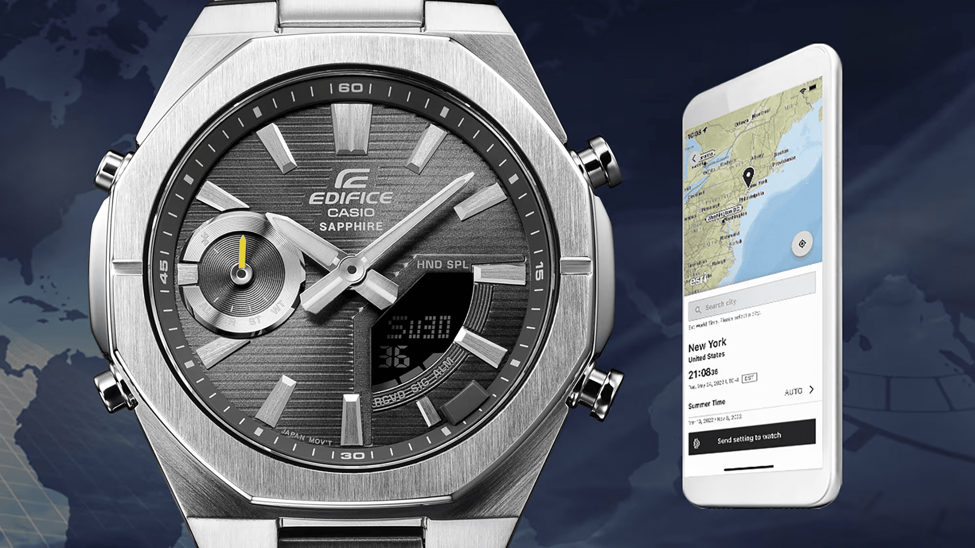 Sync with your smartphone via Bluetooth® for automatically adjusted precision timekeeping. Tap into the app to effortlessly manage world time no matter where your travels take you. Whether for business or pleasure, international trips are seamless with automatic updates for local time and daylight savings. The app also makes managing alarms, times, and other features easy and intuitive.
