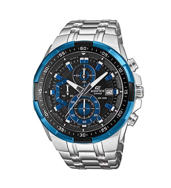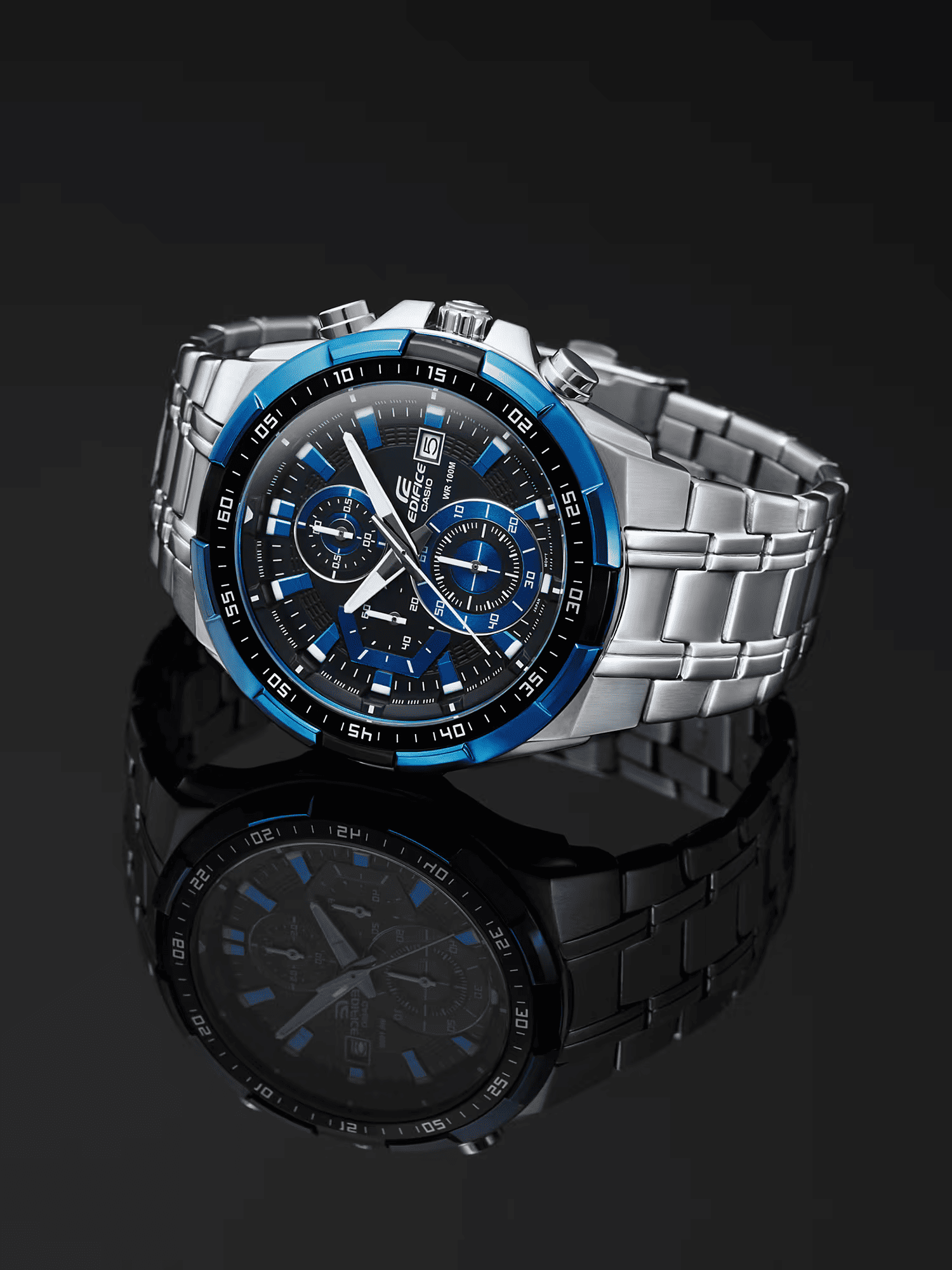 • Watch Features Stopwatch \n1/10-second stopwatch Measuring capacity: 59'59.9'' Measuring modes: Elapsed time, split time, 1st-2nd place times Accuracy Accuracy: ±20 seconds per month Other features Regular timekeeping: Analog: 3 hands (hour, minute, second), 3 dials (stopwatch 1/10 seconds, stopwatch minutes, stopwatch seconds) Date display