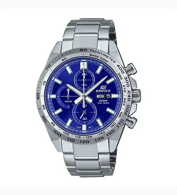 Analog: 3 hands (hour, minute, stopwatch seconds), 3 dials (timekeeping second, stopwatch hours, stopwatch minutes)