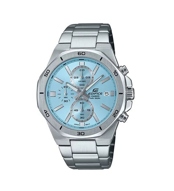 Analog: 3 hands (hour, minute, second), 3 dials (stopwatch 1/10 seconds, stopwatch minutes, stopwatch seconds)