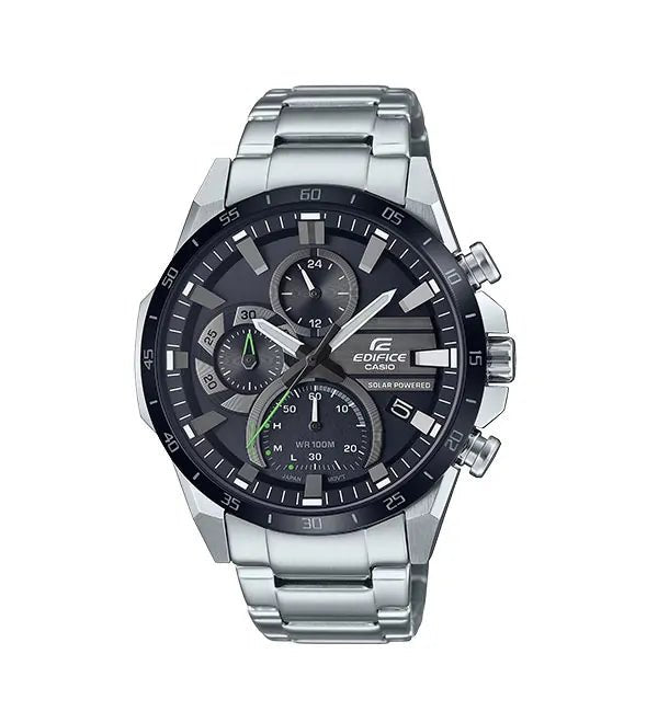 Analog: 3 hands (hour, minute, second), 3 dials (24-hour, stopwatch minutes, stopwatch seconds)