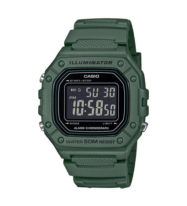 WATCH DESCRIPTION Case size (L× W× H): 44.4 × 43.2 × 11 mm Weight: 37 g Case and bezel material: Resin Band: Resin Band Water resistance: 50-meter water resistance Power...